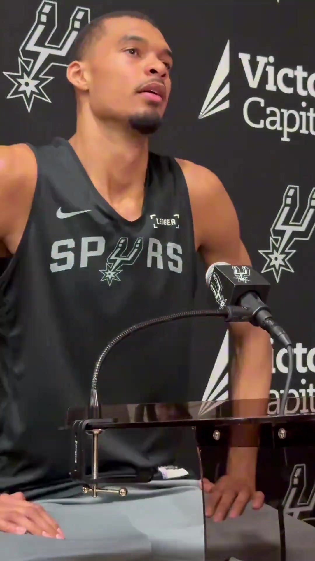 >这压迫感!文班亚马坐着都比记者高?
