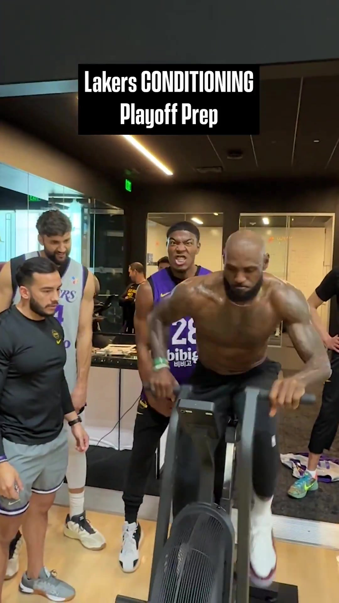 >不输年轻人啊💦老詹踩动感单车,这身体状态真猛啊!