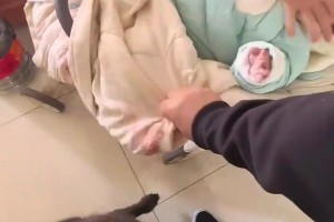 爸爸只要碰宝宝周围,狗狗就冲着呲牙