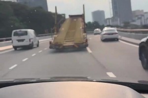 车主在马路上开车时遇到拖车的,总有一种把车开上去的冲动