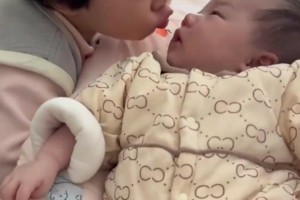 姐姐对着弟弟噘嘴巴,看到弟弟拒绝自己,下一秒把弟弟掀翻